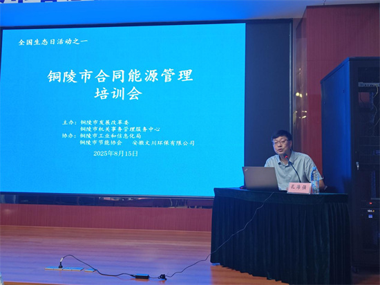 2025年8月15日,为深入贯彻省发展和改革委员会与省机关事务管理局联合印发的《关于开展以园区为载体一体推进工业领域合同能源管理和以县域为载体一体推进公共机构领域合同能源管理试点建设的通知》,由铜陵市发展和改革委员会与铜陵市机关事务管理中心联合主办,铜陵市经济和信息化局、铜陵市节能协会及安徽文川环保有限公司承办的“铜陵市合同能源管理培训会”于市节能协会会议室成功召开。