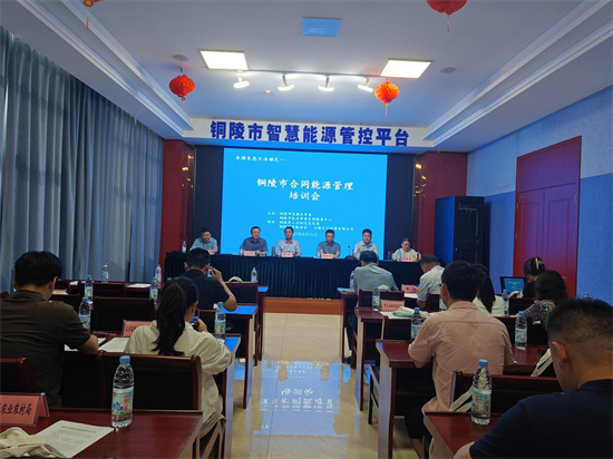 在培训会议上,铜陵市发展和改革委员会副主任孔海强传达了合同能源管理省级试点建设以及项目建设的相关要求。铜陵市节能协会特聘高级工程师张春霞与国网安徽综合能源服务公司新能源事业部主任朱劲波,分别从政策层面和实施流程层面,就一体推进合同能源管理项目进行了授课。