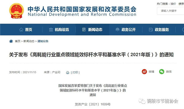 11月15日,国家发改委发布《高耗能行业重点领域能效标杆水平和基准水平(2021年版)》的通知。
